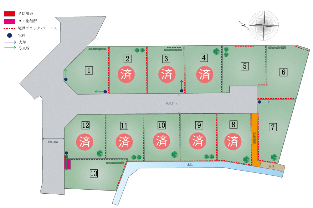 ■弊社売主の場合、西和不動産の建築条件付きにつき、地盤補強工事(杭工事等)は、西和不動産の負担にて施工致します。また弊社では第三者による地盤保証20年をつけており、保証会社による解析を基に補強工事を行っております。 (弊社指定の補強工事以上の工事を求められる場合は、別途費用を要します)■境界ブロック代:1号地26.2万円、5号地28.2万円、6号地21.7万円、7号地37.8万円、13号地50.1万円■水道加入金:83,660円別途要(13φの場合)/177,950円別途要(20φの場合)■自治会加入金:無し■自治会費:500円/月 |