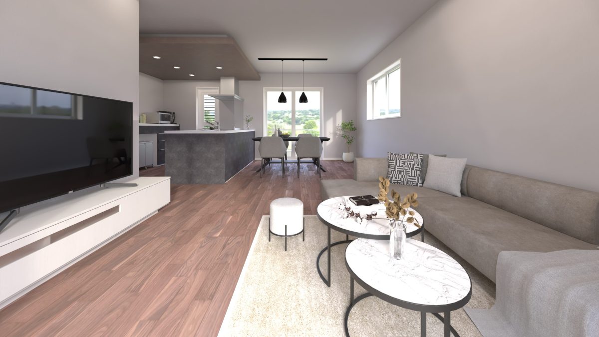 広々したLDKはキッチンからダイニング、リビングへと視線がつながり一体感のある空間に。