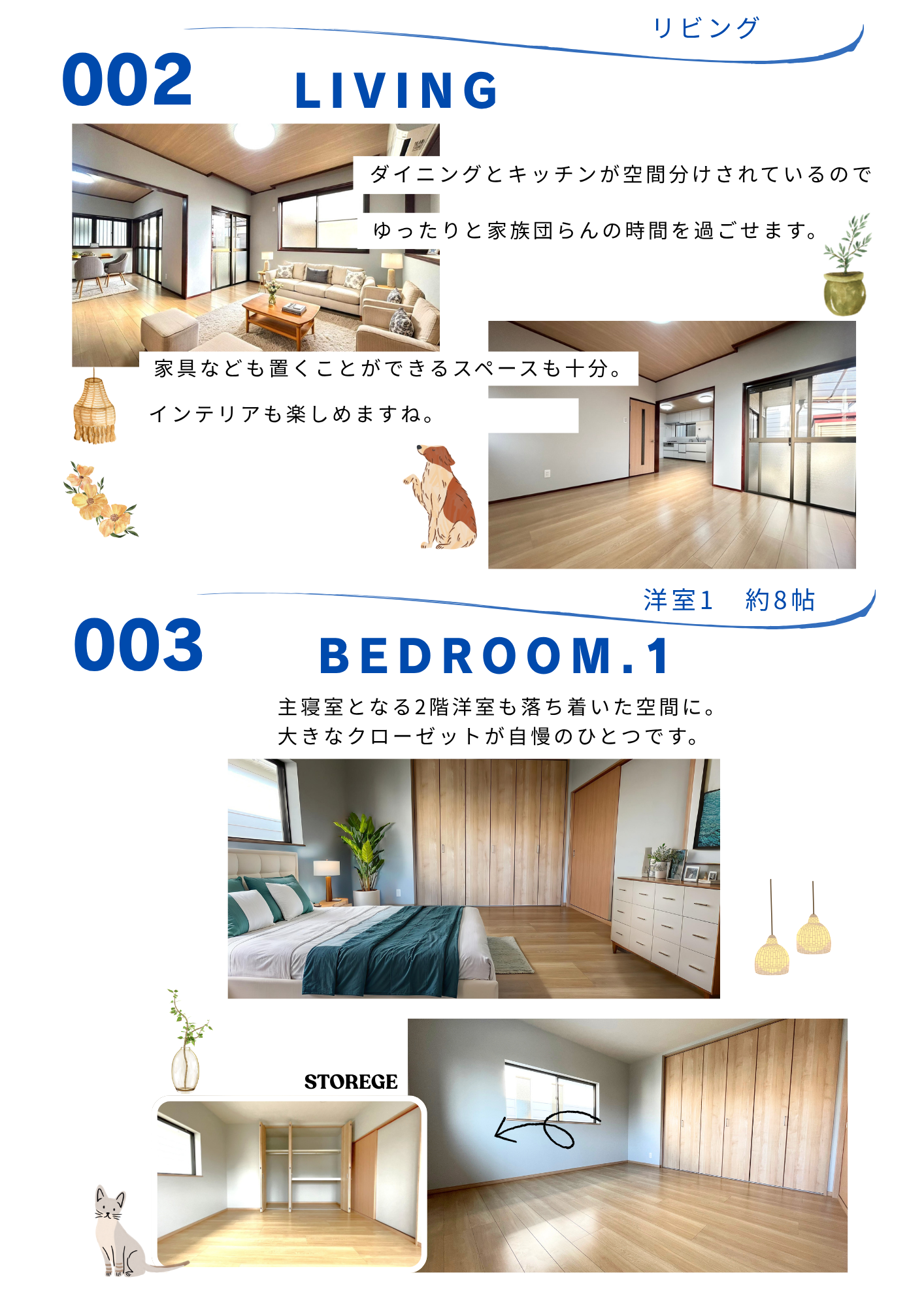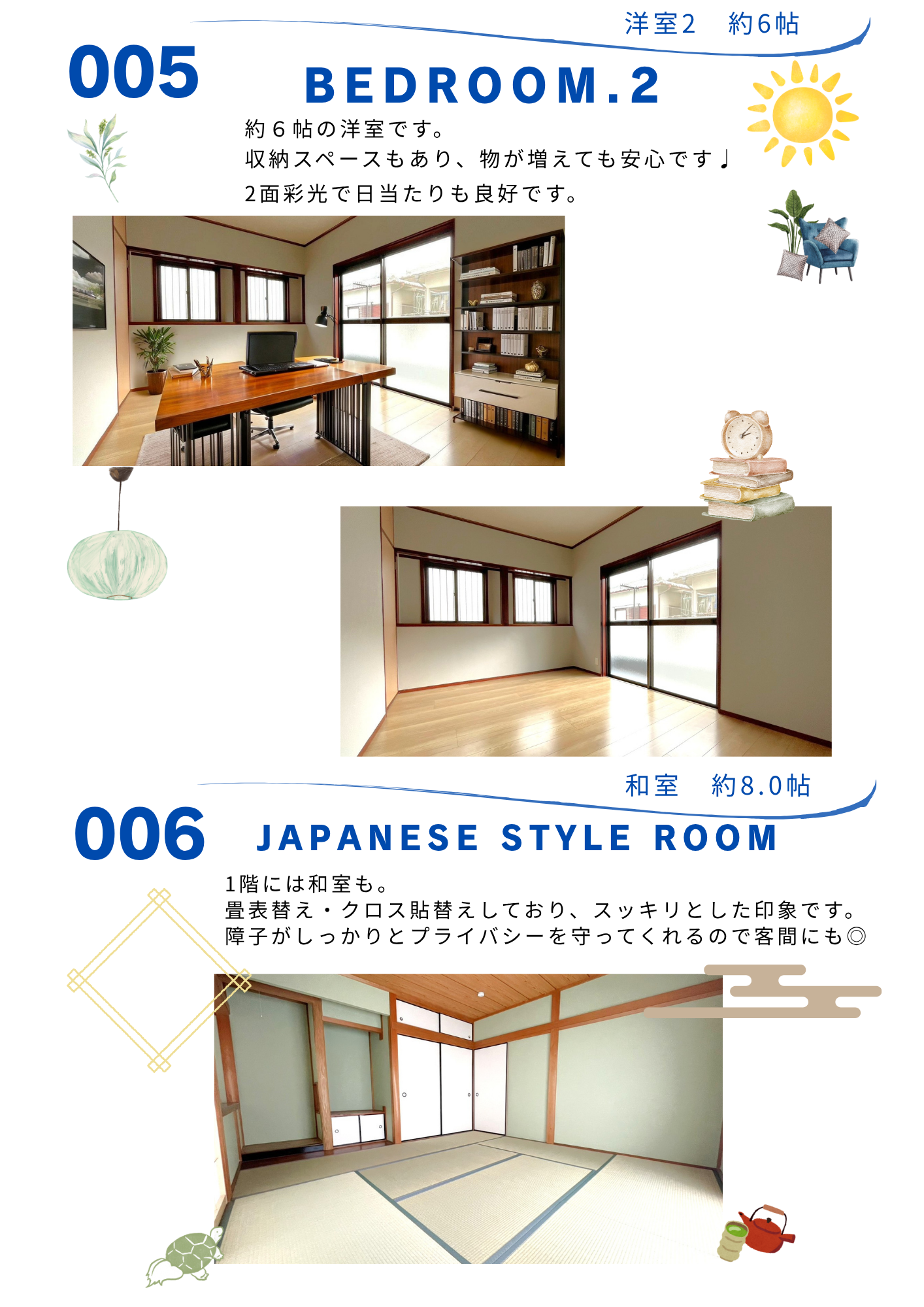 全室6帖以上かつ二面彩光でどのお部屋も明るく風通しがよく気持ちよく過ごせます。