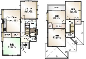 間取り 4LDKリビングダイニングキッチン 17帖(1階) 和室 8畳(1階) 洋室 6帖(2階)×2 洋室 8帖(2階))