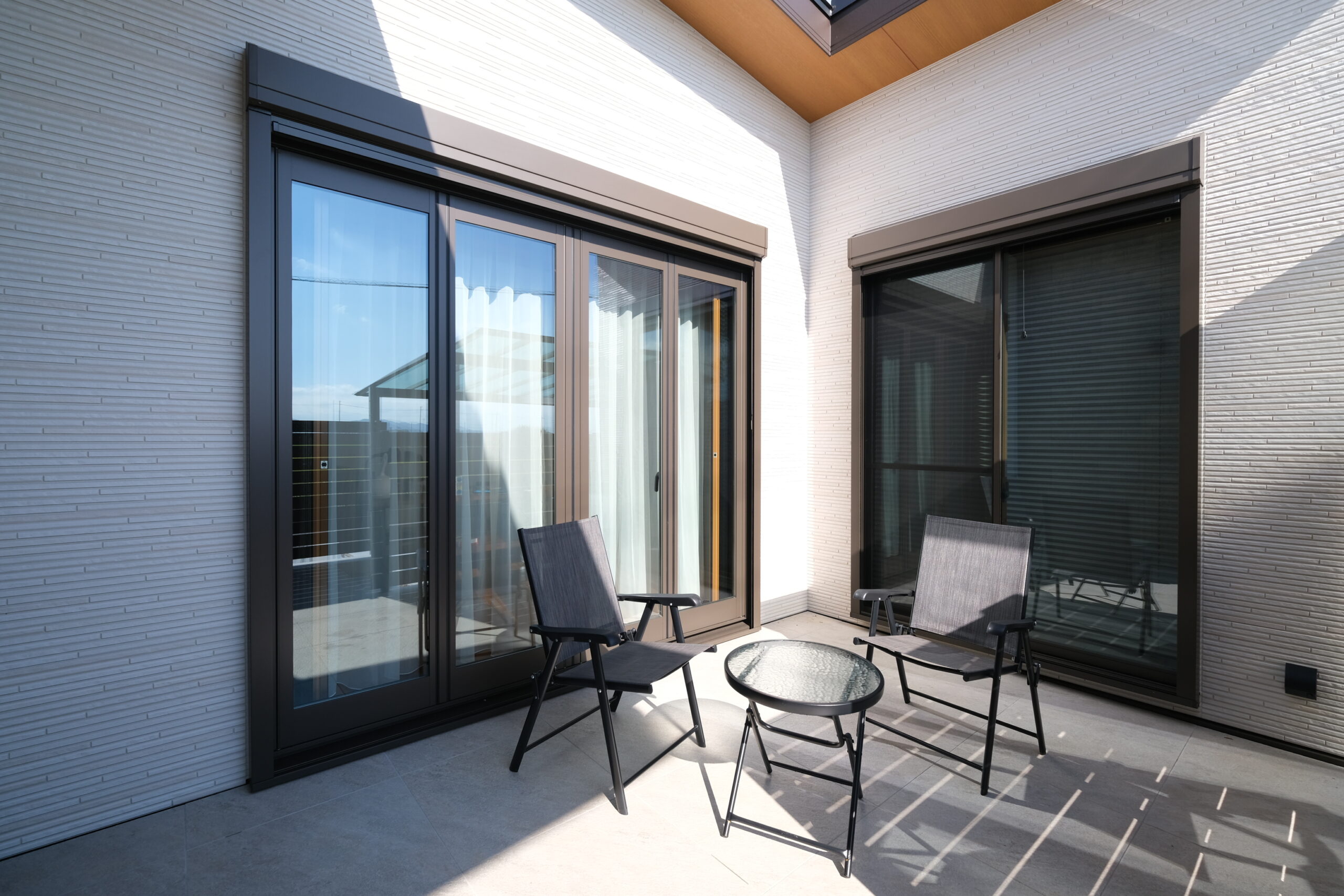 屋内と屋外をゆるやかにつなぎ、家族の憩いの場やゲストを招いたティータイムなど、多様なシーンで活躍します。