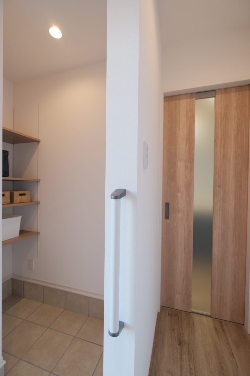シューズクロークには傘や、ベビーカーなどを収納することで、すっきり整った玄関を保てます。