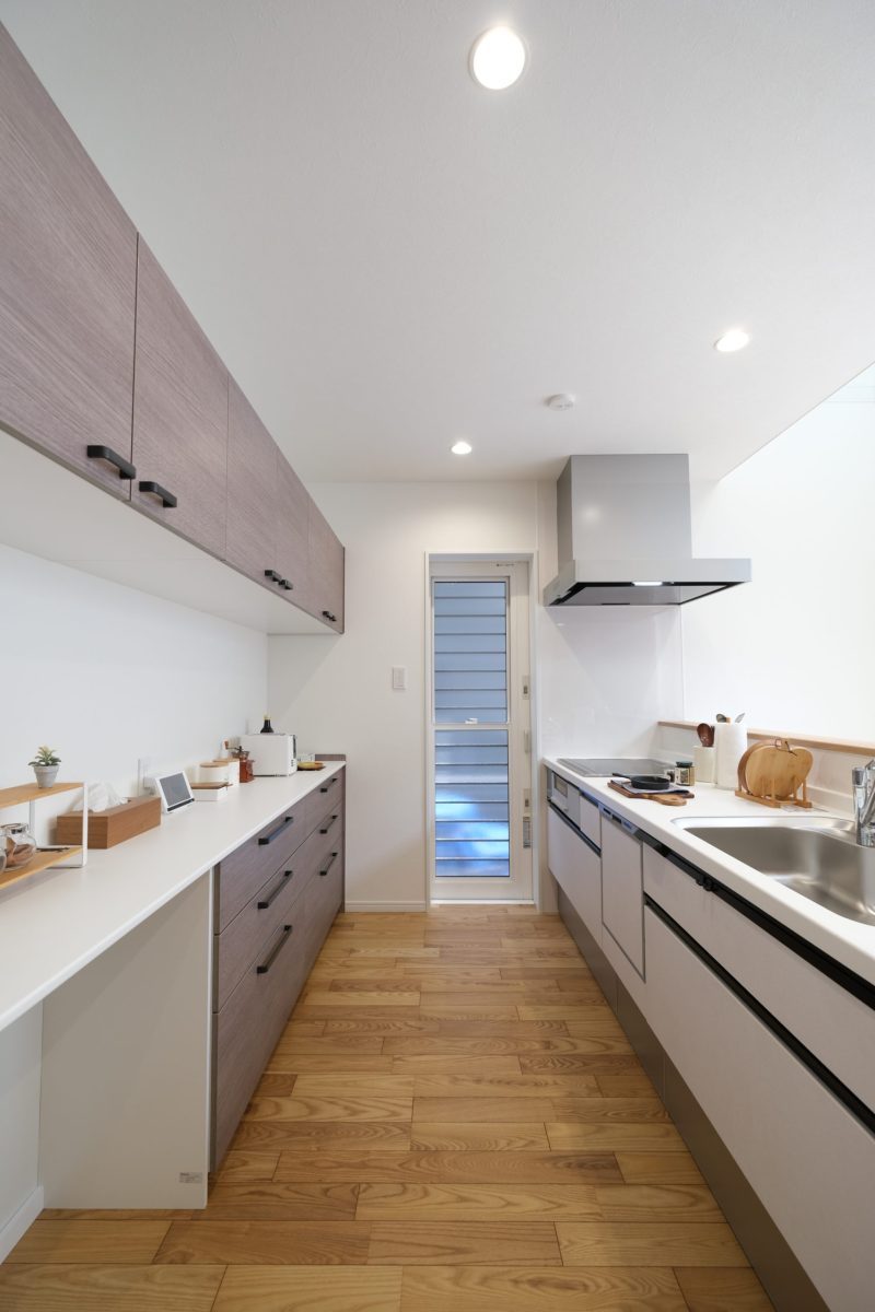 キッチンとダイニングは横並びにして配膳も楽ちん。