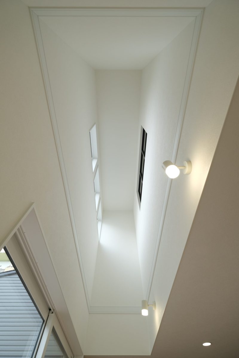 LDKには吹抜けがあり、上部の窓から明かりがたくさん入って開放的で明るいLDKに。